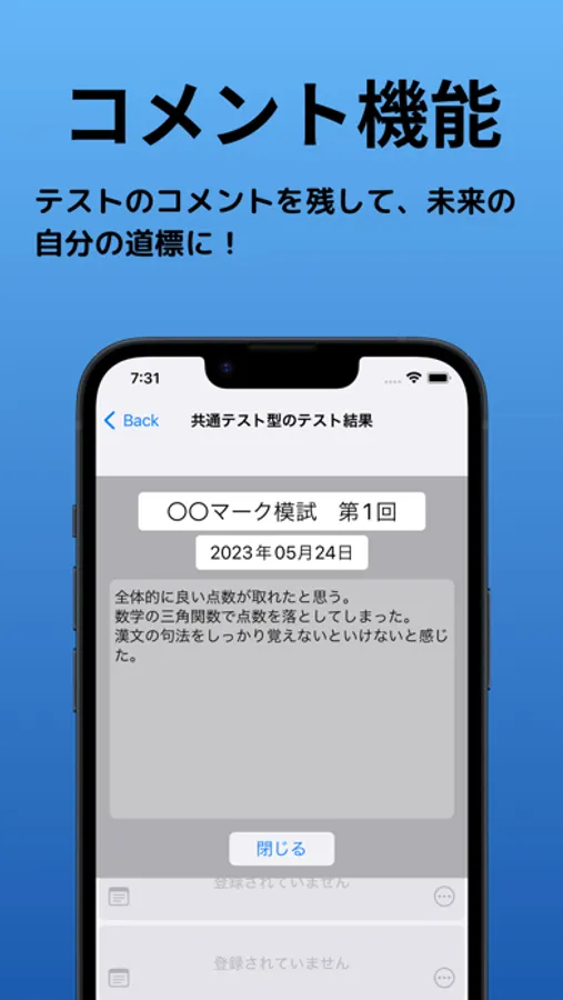 ・テスト成績へのコメント機能