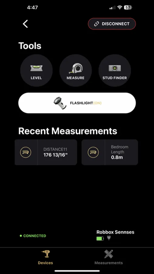 With the Robbox App paired to the Sennses™ Pro, you can save and organize measurements, assign them to projects, convert and add measurements, screen-mirror your device, and so much more!