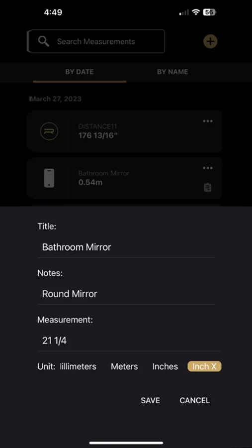 • Organize Projects: Assign measurements to projects and create a streamlined organizational process without the use of a notepad.