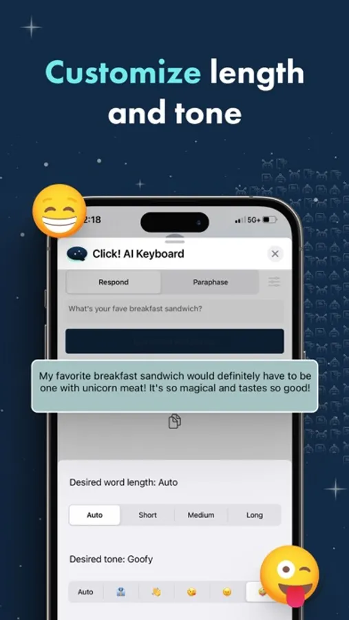 Generate the perfect reply to any message with just a click! Customize length and tone to exactly what you want.