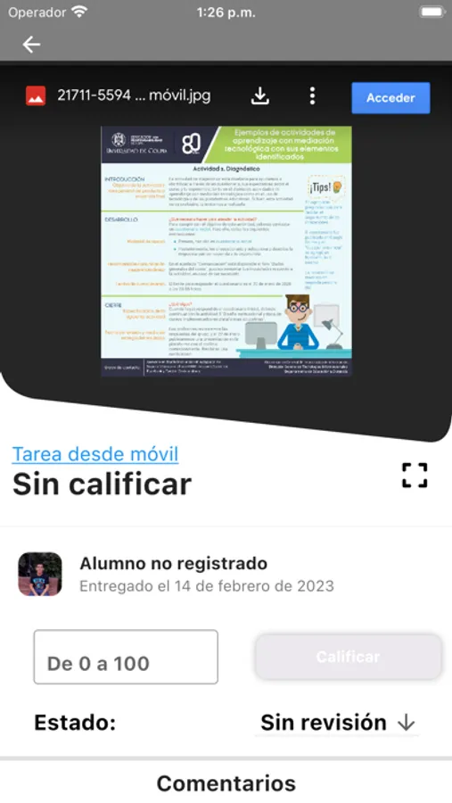 Esta aplicación permite a los profesores calificar tareas.