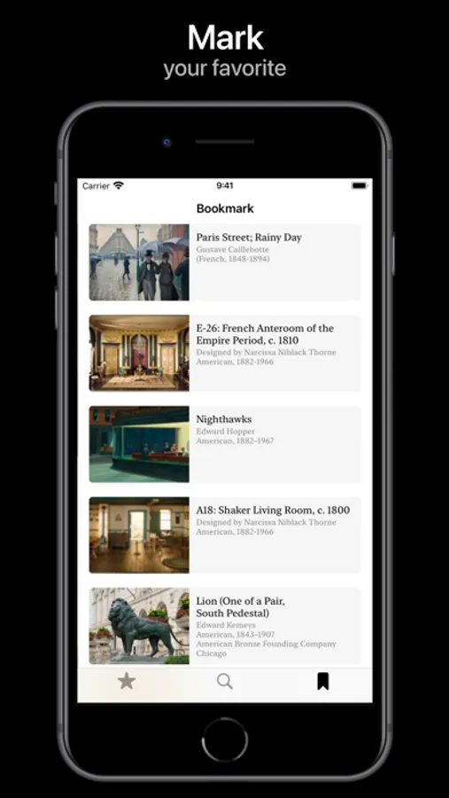 Our intuitive and minimalist design makes exploring and discovering art a seamless experience. With the Explore tab, effortlessly browse and bookmark your favorite pieces, even downloading them as wallpapers to personalize your device. The Search tab makes it easy to find specific works, while the Bookmark tab displays all of your saved artworks.