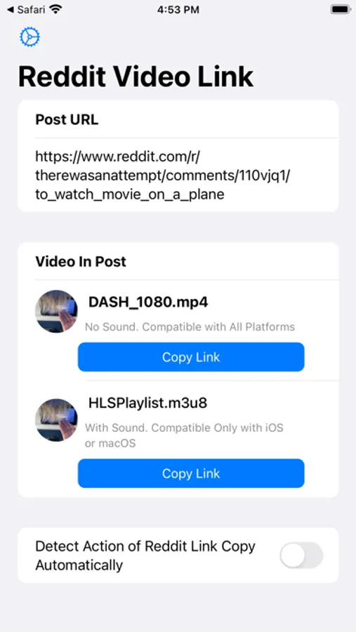 It also supports automatic detection of link copy. Just copy the link of the post in [Reddit app], then [Direct Video Link for Reddit] will automatically extract a direct link to videos in the post.