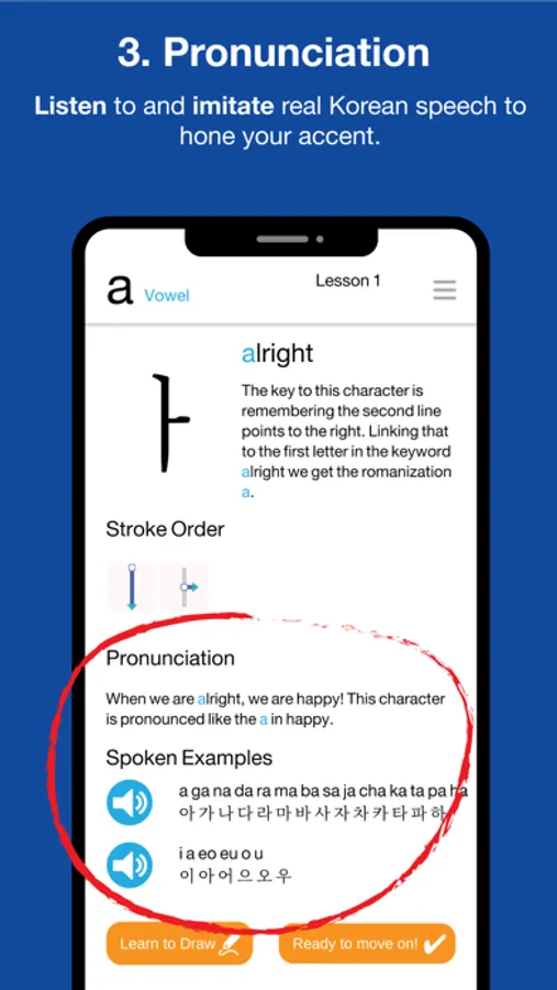 Our Korean language learning app helps you learn to read and write: