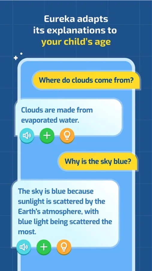 From explaining the mysteries of clouds to addressing jealousy between siblings, Hi Eureka covers a wide range of topics. It can even explain school related topics and other important subjects like the meaning of empathy. It's like having an expert companion simplifying complex ideas.