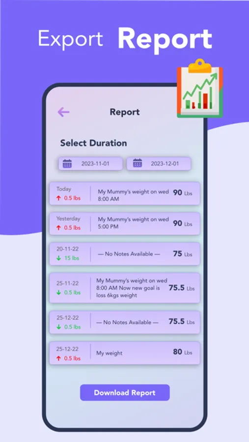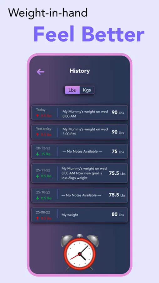 - Get notification when your goal weight achieved