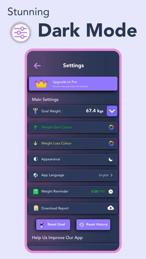 - Get Daily Reminder about to track your weight in Weight Reminder setting.