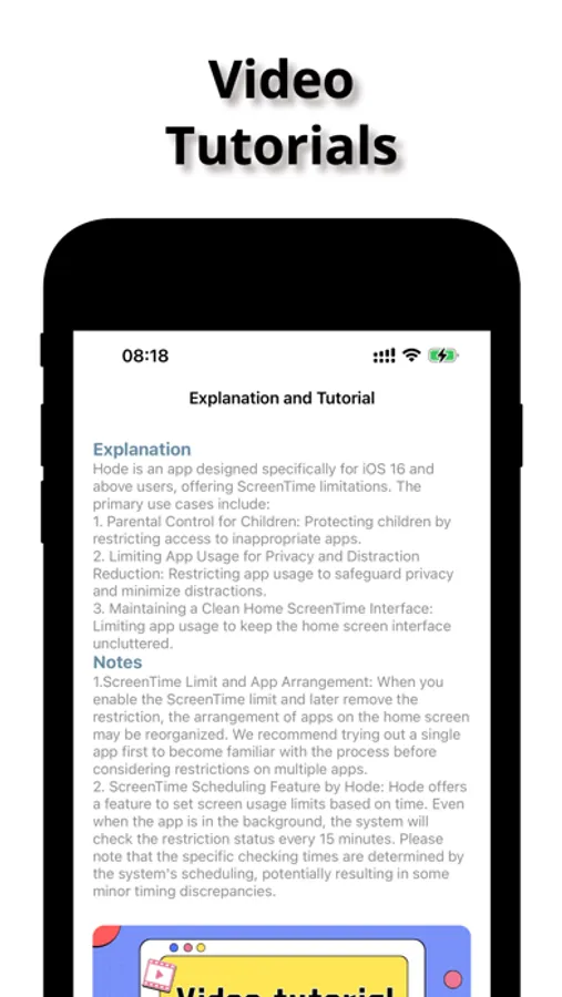 Security Assurance: The Hode app ensures that all app-related information restricted is stored locally on your phone, not uploaded to servers, thus ensuring the security of your private content and preventing unauthorized access.