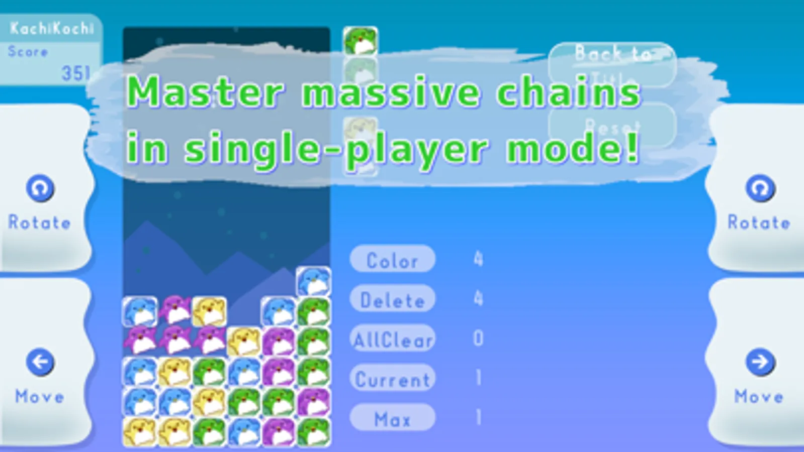 After the disappeared cubes fall, you can chain them and erase them by connecting more cubes.