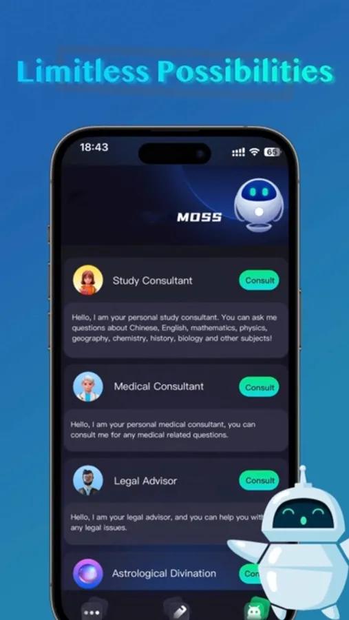 The smartest chatbot. MOSS understands human beings best, it can imitate human chatting methods, make conversations more natural, and has self-learning ability to meet your various questions.