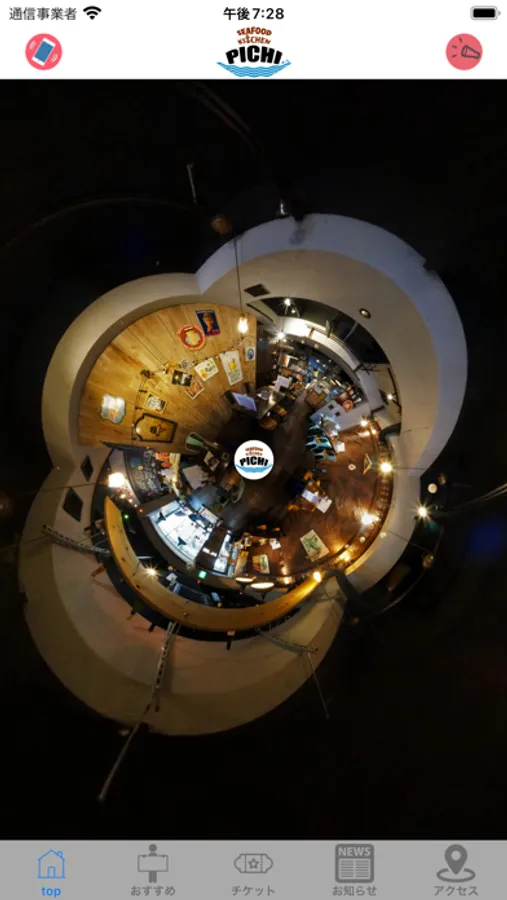 360度パノラマ画像でのお店の内観の閲覧や、お店へのアクセスなどの店舗情報の確認、またお得な情報などの最新のお知らせを確認することができるアプリケーションです。