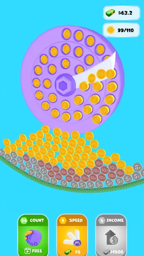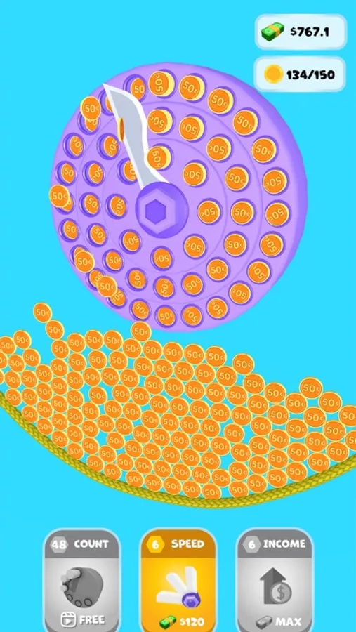 Cut the coins coming out of the machine and earn to income. Open new coin slots with your winnings and increase your coins. Keep moving forward with the hypnotic effect and improve your machine even more to generate coins!