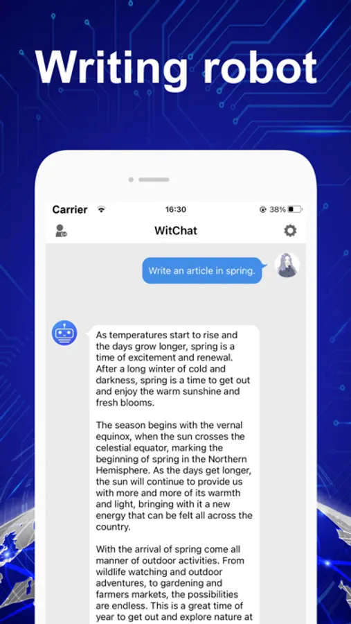 WitChat is an intelligent, funny, humorous and intelligent AI chat robot.
