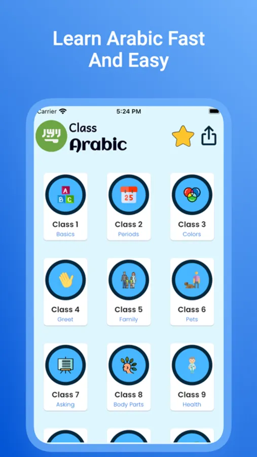 Complete Arabic Language learning course from basics to advance level and for beginners. Our app lets you learn Arabic language within two months of durations if you are really serious to learn Arabic. There are hundreds of different categories available in the app include daily life important phrases of Arabic language. There are thousands of Arabic words and phrases as well as also Arabic sentences available in the app.