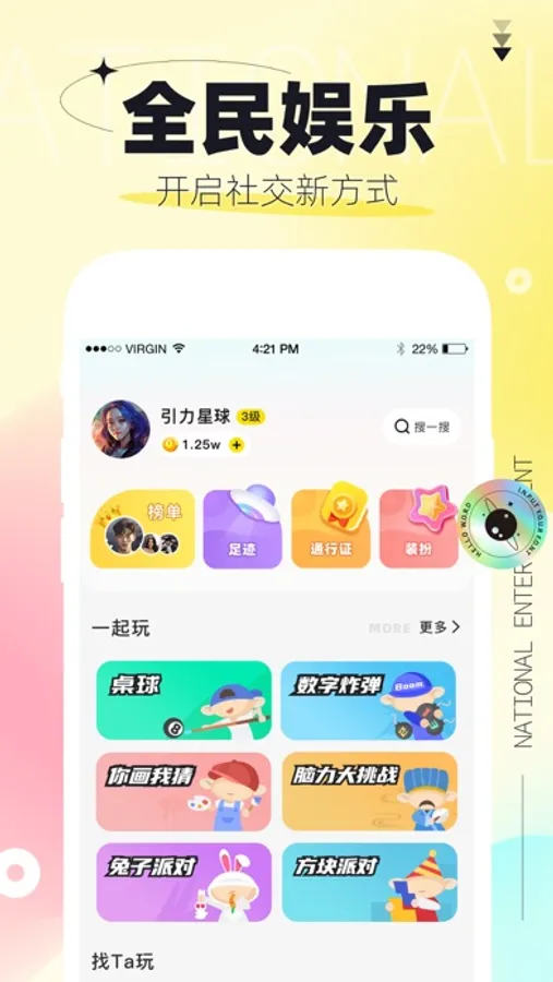 在引力中吸引志同道合的玩伴,释放自我,邂逅惊喜,趣味嗨不停!