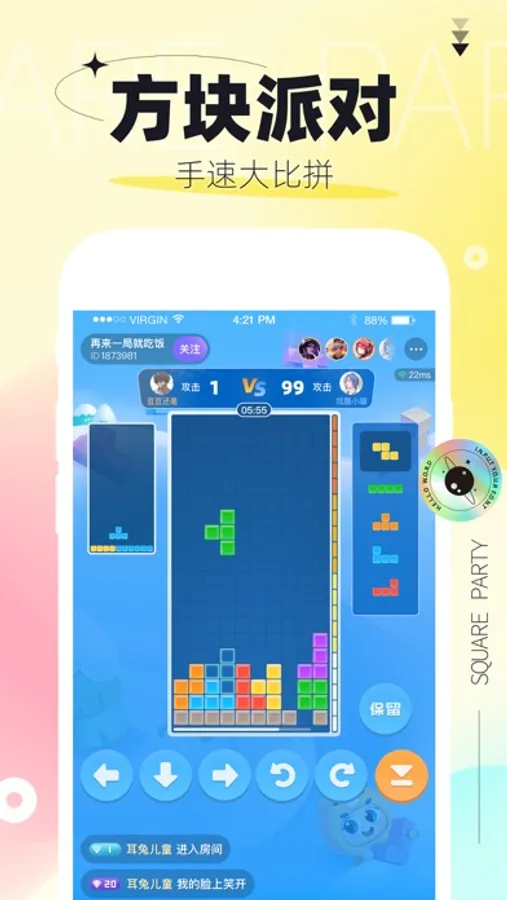 方块派对、你画我猜、兔子派对、谁是卧底,桌球竞技...超多互动玩法,总有一款适合你。轻松组队,即玩即停,趣味上头,叫上你的玩伴搭子一起比拼嗨起来!