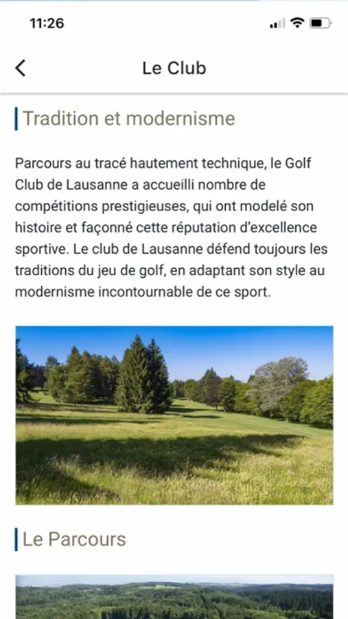 Découvrez l'application officielle du Golf Club de Lausanne. Présentation du golf avec l'ensemble des services associés pour les extérieurs et les Membres :