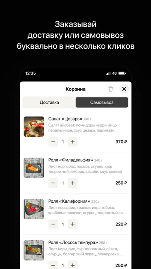 — Быстрый заказ с мгновенным подтверждением через приложение.
