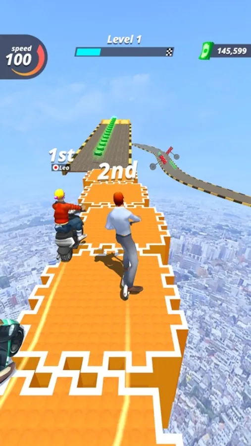 You'll feel like you're truly flying through the city. Scoot Rush offers thrilling racing on a track high up in the air with a variety of dazzling designed maps and themes. From urban landscapes to exotic locales, each track presents a unique challenge with its own set of obstacles and surprises. Every race is a new opportunity to explore and conquer diverse tracks.