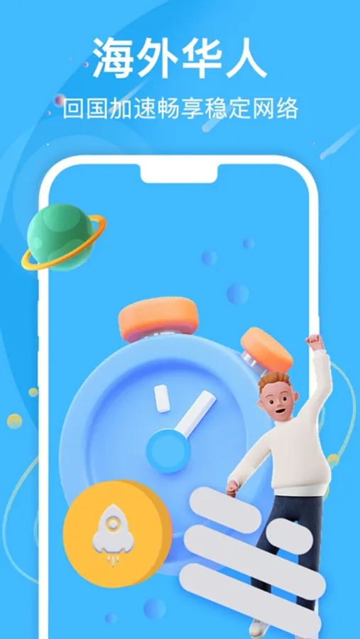 本应用是一款向海外华人提供网络加速服务的网络加速工具,帮助海外党一键穿梭回国,观看国内体育赛事、畅玩国内影音,为用户提供高速稳定的网络加速服务。