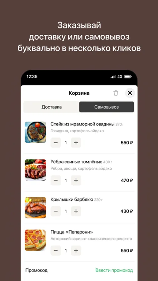 — Сделать заказ быстро и с мгновенным подтверждением через приложение;