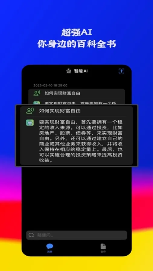 本应用利用该先进的人工智能技术为用户进行聊天和创作,帮助用户轻松愉快的解决生活或者工作中的问题,为用户带来全新不一样的人工智能体验。智能机器人可以充分理解自然语言,具有自动响应、自动回复、自动识别用户意图等特点,可为用户提供以下服务: