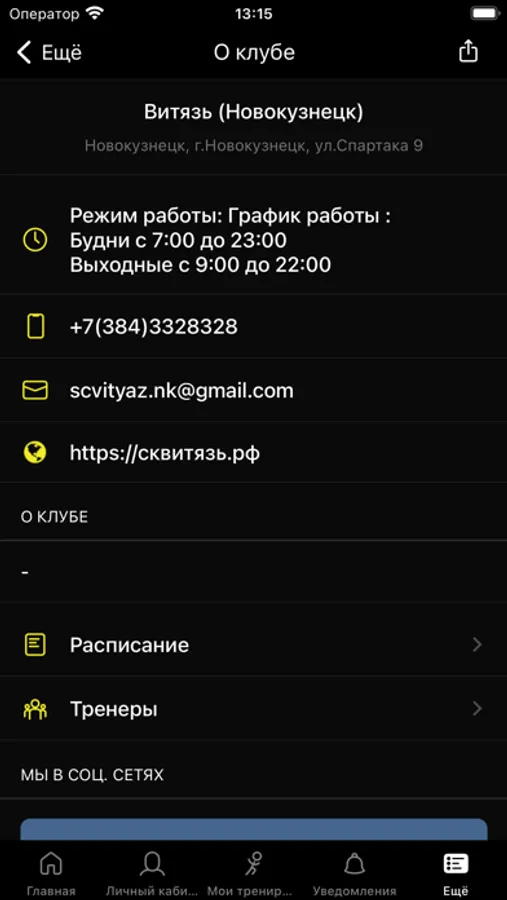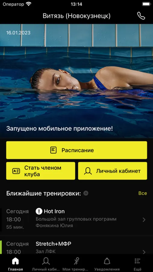 Приложение для клиентов и гостей Спорткомплекса «Витязь».