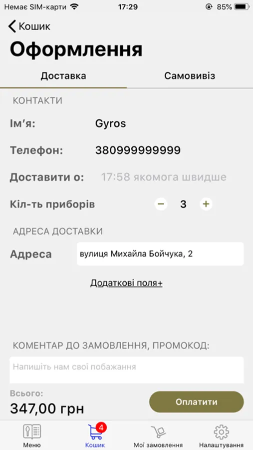 Додаток Gyros - це зручний і швидкий сервіс доставки.