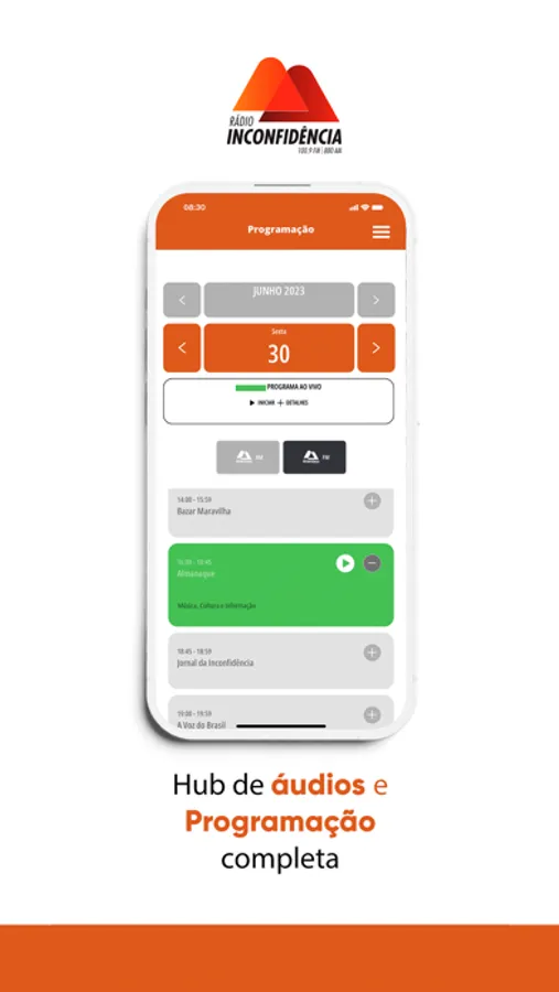 O novo aplicativo da Rádio Inconfidência oferece acesso conveniente ao acervo completo da rádio, trazendo a melhor programação diretamente para a palma da sua mão. Com uma experiência ágil e prática, o aplicativo permite que os ouvintes desfrutem facilmente de transmissões ao vivo, programas gravados e conteúdos exclusivos. Aproveite a rica herança da Rádio Inconfidência a qualquer momento e em qualquer lugar, conectando-se de maneira simples e envolvente à cultura, música e informações oferecidas pela estação.