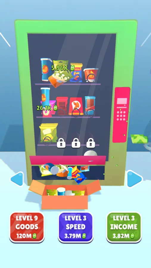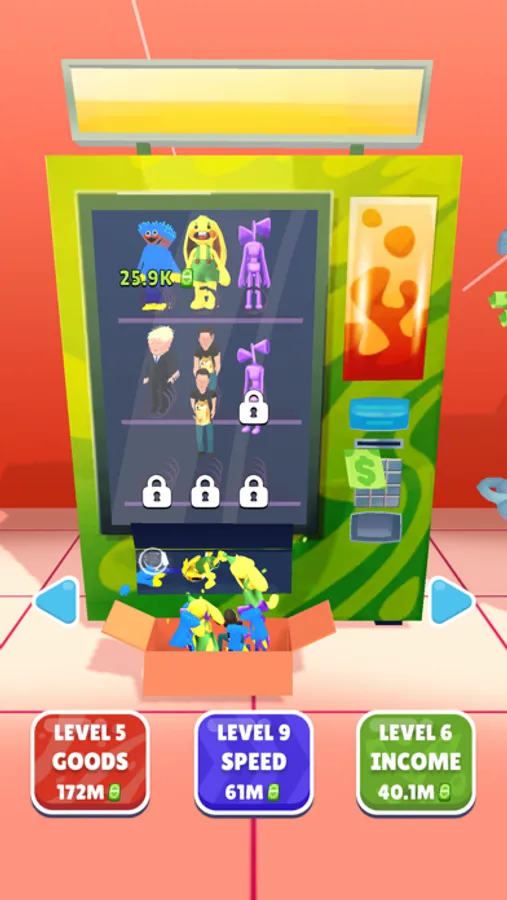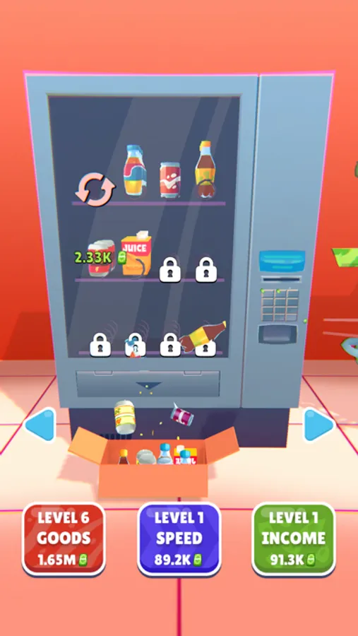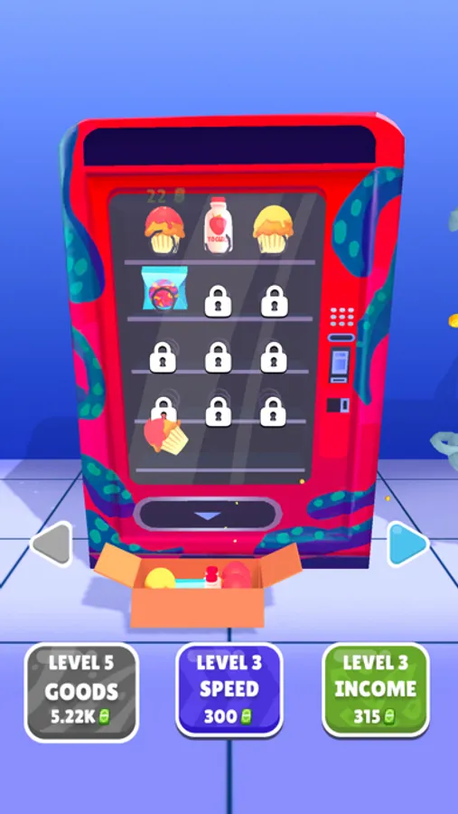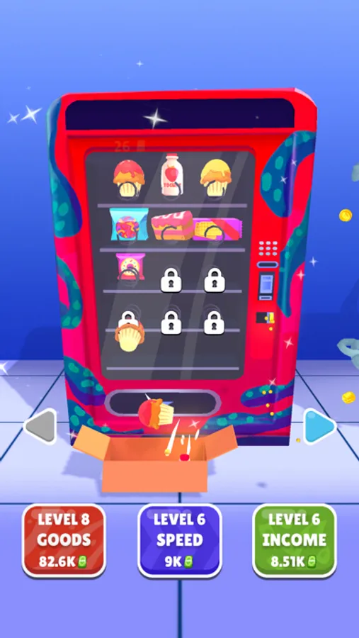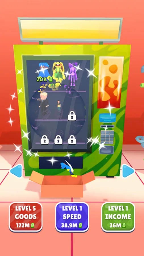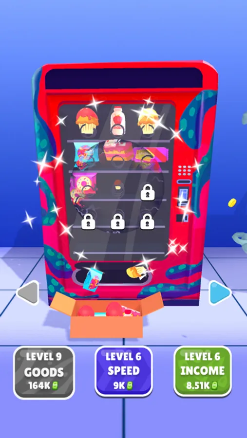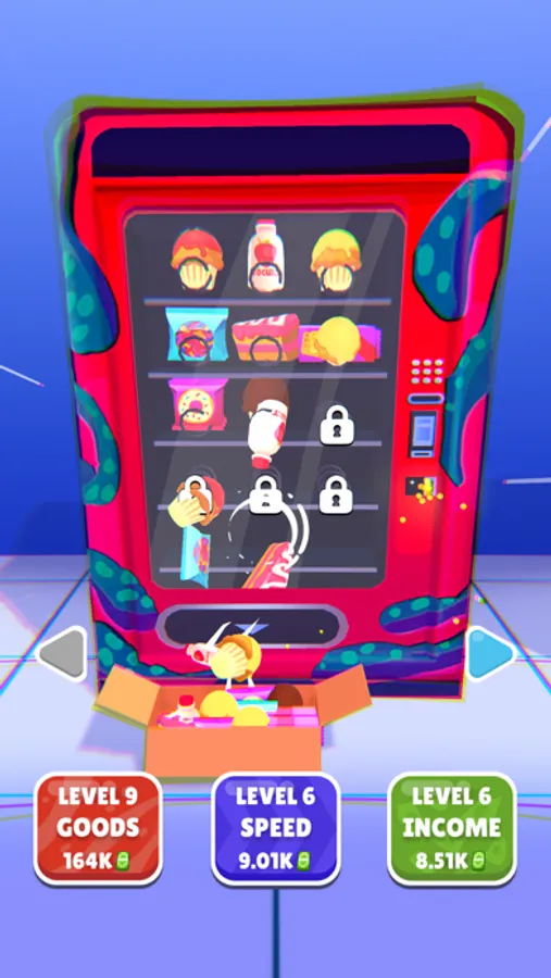 Sell the goods to unlock new vending machines with various toys, food and drinks, to become the king of vending machines!