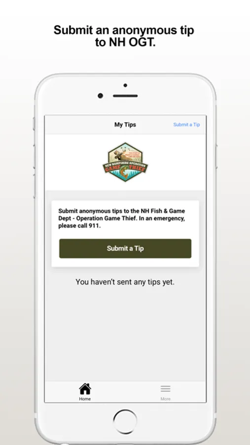 The NH OGT app provides citizens the ability to submit anonymous tips to the New Hampshire Fish & Game Department - Operation Game Thief. The app also displays organization web and social media content.