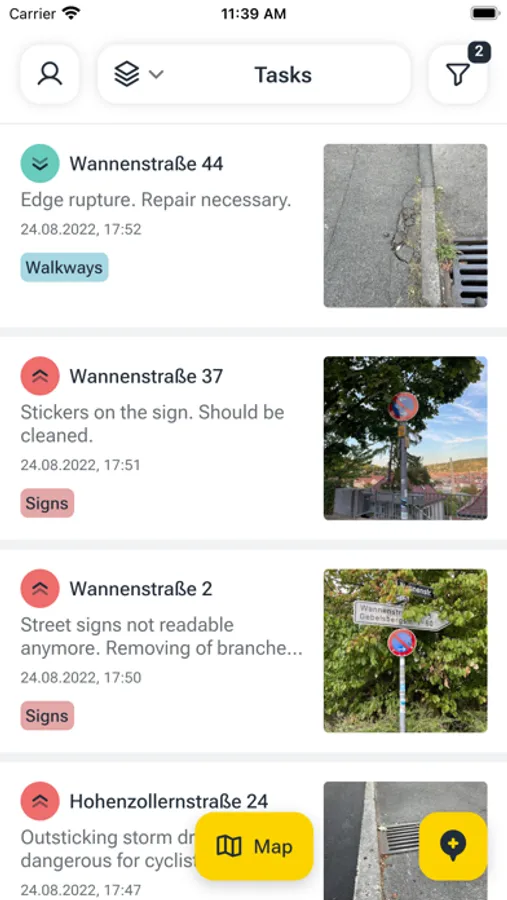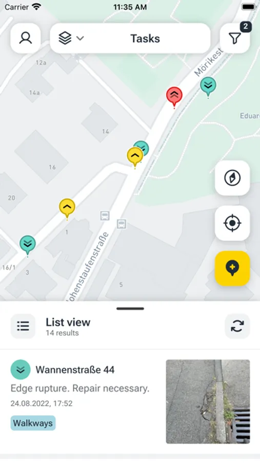 vialytics is an intelligent Road Management System, consisting of a smartphone app and a web app. With the here shown vialytics smartphone app, municipalities can easily create and manage georeferenced tasks or assets, and automatically document their regular track controls or winter services.