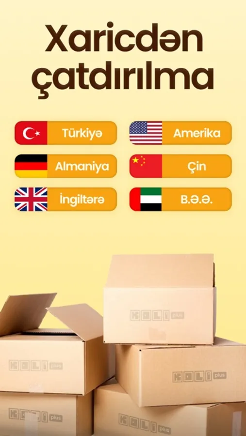 KoliPlus Karqo ilə Türkiyə, Amerika, Çin, Almaniya, İngiltərə və B.Ə.Ə. Dubaydan çatdırılma əldə edin.
