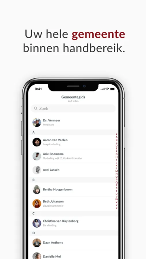 Wie zoekt er tegenwoordig nog een telefoonnummer op in het telefoonboek? Vrijwel niemand! Dankzij de gemeentegids feature is iedereen binnen uw kerkelijke gemeente terug te vinden. Snel berichten sturen, naar een adres navigeren of zien wat iemands rol in de kerk is? Met de digitale gemeentegids wordt het makkelijk.
