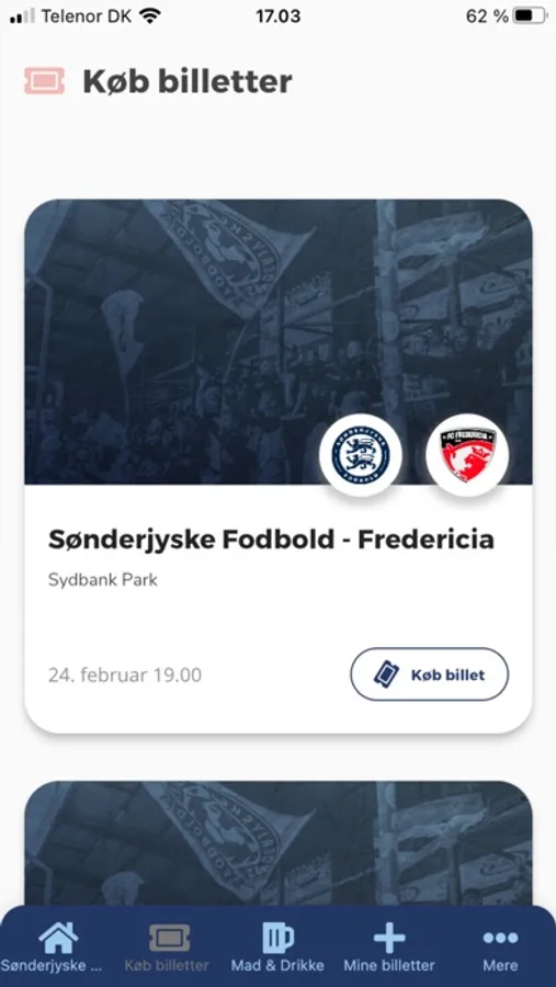Gennem Sønderjyske Fodbold appen kan du købe og opbevare dine billetter og sæsonkort, tjekke nyheder og deltage i konkurrencer.