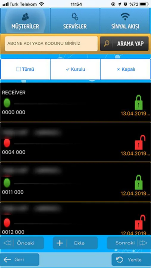 Pima Alarm Sinyal Takibi uygulaması Alarm Kontrol Merkezi abonelerinin alarm sistemlerinin durumunu (alarm sisteminin kurulu olup olmadığı) ve Alarm merkezine gelen 30 sinyali görebilecekleri uygulama.