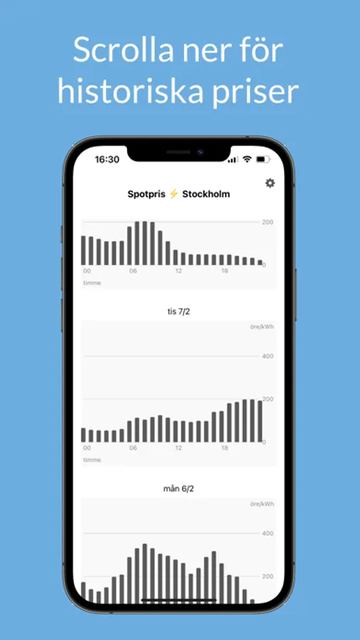 Se vad elen kostar timme för timme i ditt elområde. Enkel och snabb överblick gör det enkelt att planera när du ska ladda bilen, köra tvättmaskinen m.m.