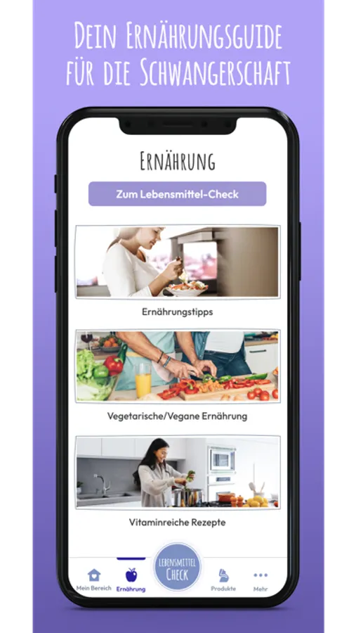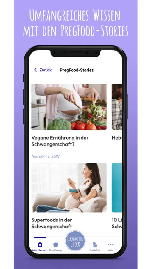 Übersichtlich gestaltete Features helfen dir, mehr Sicherheit, Qualität und Genuss rund ums Essen zu schaffen. Natürlich liefert PregFood auch viel Wissenswertes, wenn du dich vegetarisch bzw. vegan in der Schwangerschaft ernähren möchtest.