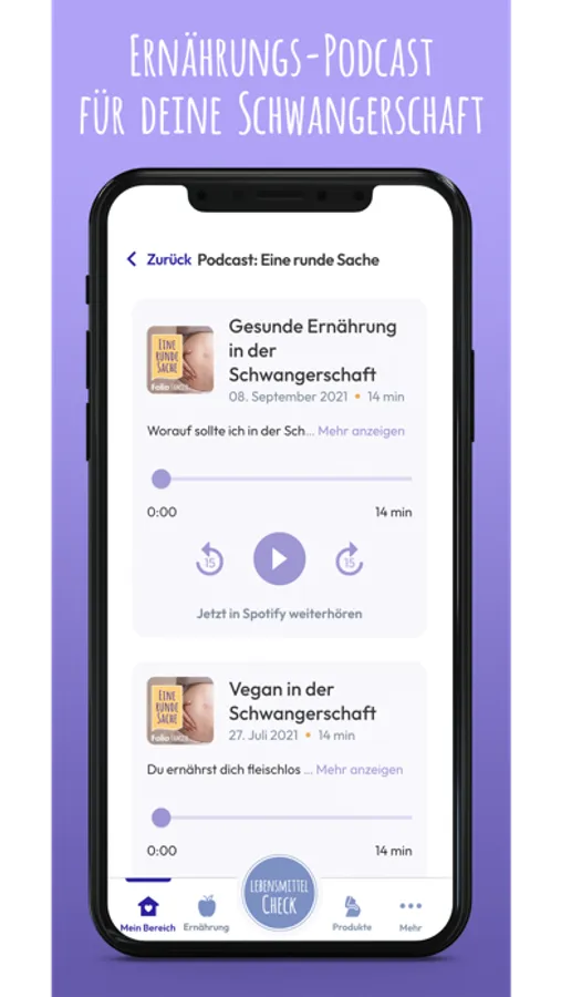 + Seriöse Handlungsempfehlungen, ärztlich überprüft + Interessante Artikel, ideal für unterwegs + Integrierte Podcast-Folgen von „Eine runde Sache“ zum Thema Schwangerschaft + Nützliche Terminhinweise während der Schwangerschaft + Direkte Kontaktfunktion für Fragen und Anregungen