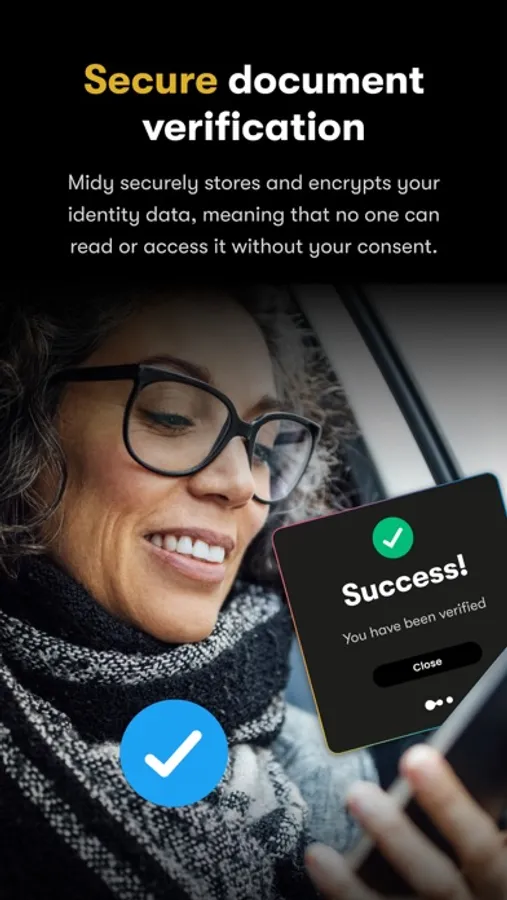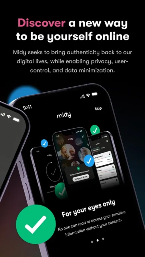 Midy securely stores and encrypts your identity data, meaning that no one can read or access your sensitive information without your consent.