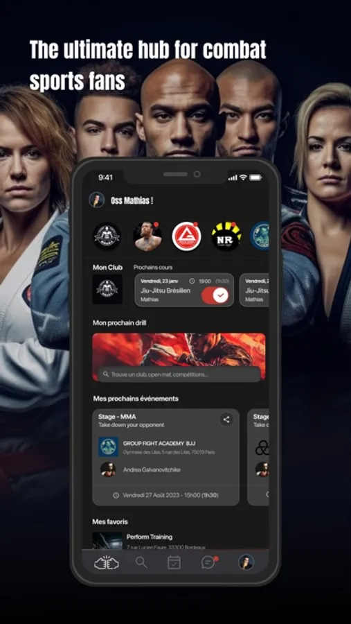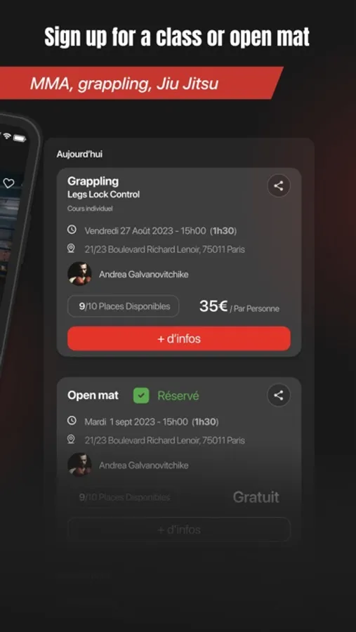 Booking system: Book free openmat sessions or paid training sessions. (subject to conditions with the clubs)