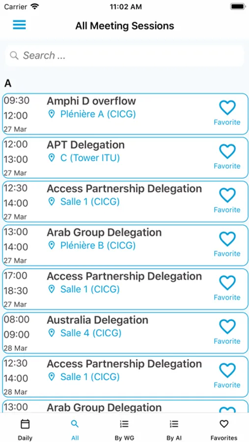 - Display meetings by day, title, working group, & agenda item for easy attendance.