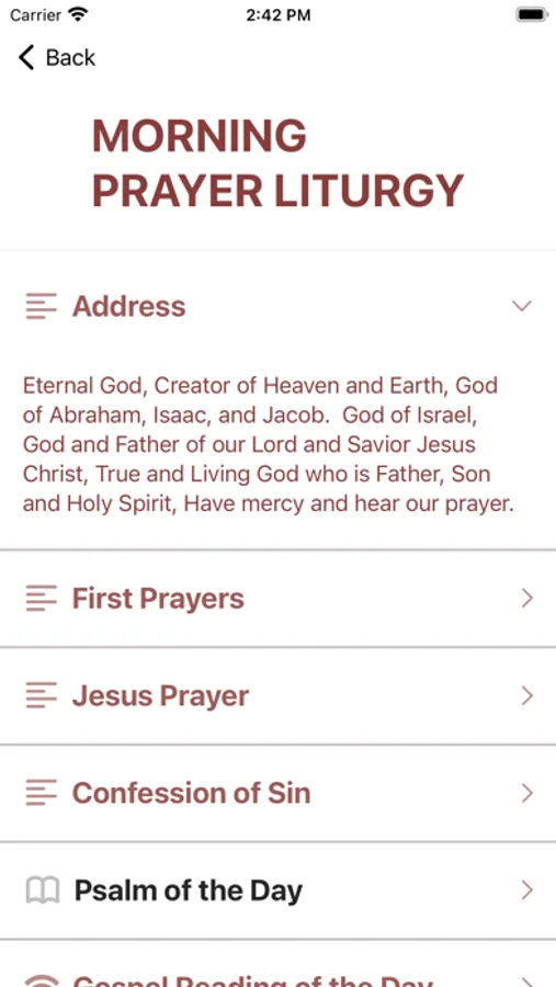 * allows each prayer to be fully expanded by tapping on the heading