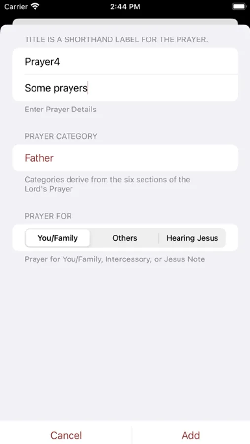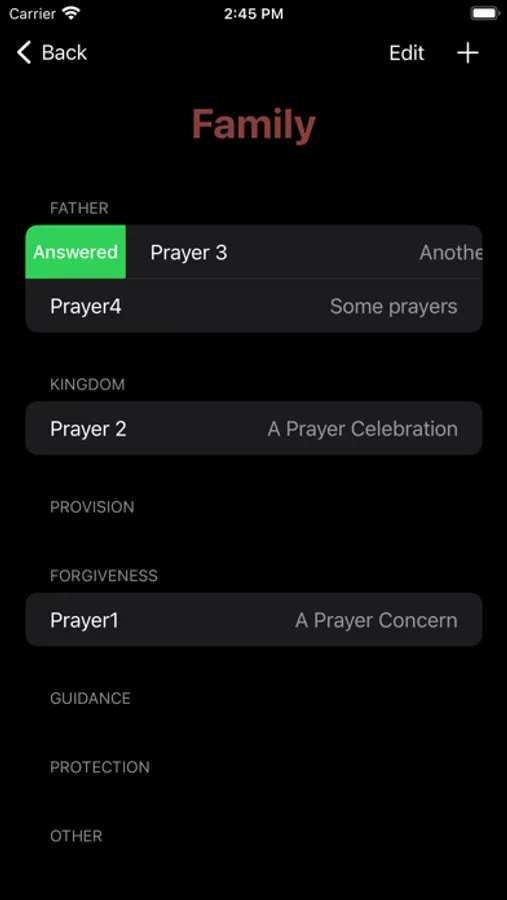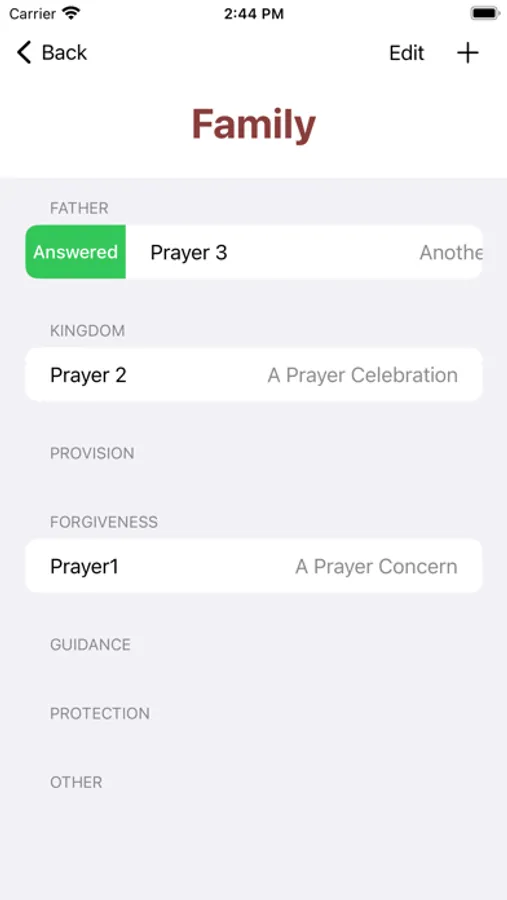 * mark prayers as "Answered", which will move them to another section of the view