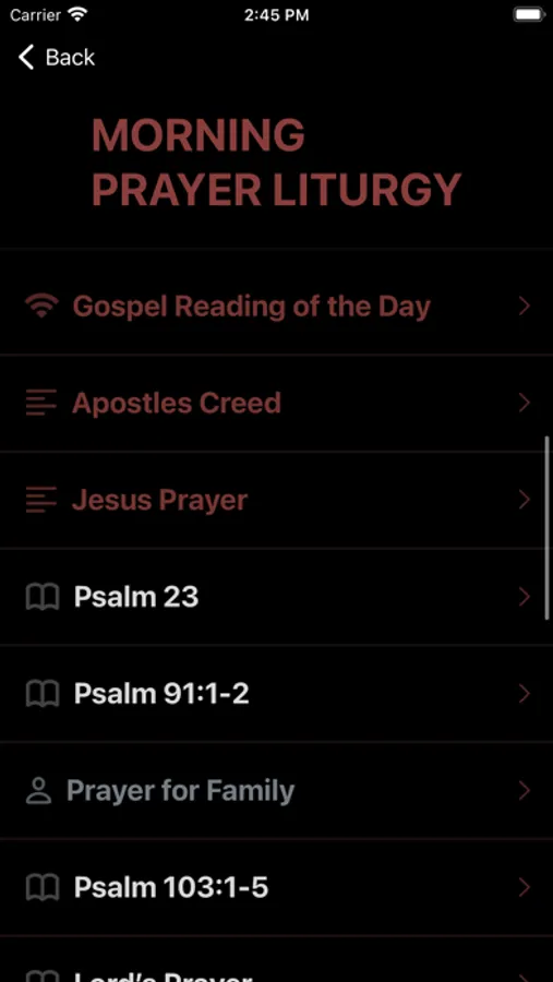 * scrolls through the subjects of the liturgies so the prayers can be recited from memory