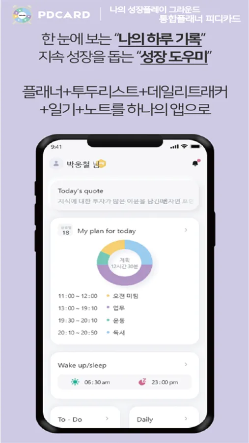 - 일일, 주간, 월간, 연간 진행률 확인