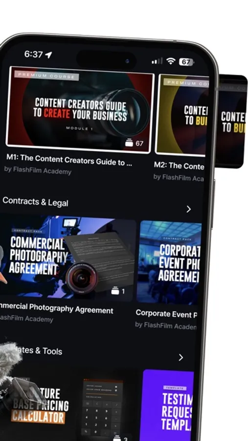 FlashFilm Academy is the only place dedicated to helping photographers, filmmakers, and content creators turn their passion into a profitable business. Our modern, real-world approach is designed to get you out of the 9-5 grind and into a career doing what you love. With our exclusive membership, you'll gain knowledge and have the support of a community dedicated to holding you accountable for your success. Don't waste any more time trying to figure out how to start and grow your business on your own. Sign up for FlashFilm Academy now and take the first step towards making six figures with your camera.