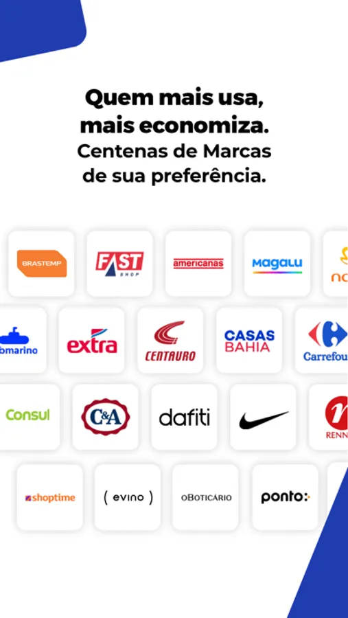 Navegue por um cardápio de ofertas com marcas parceiras de diversos segmentos.