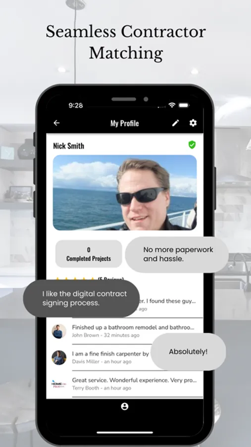 For homeowners, our interactive project planning tools and personalized recommendations ensure that your vision for your home renovation is brought to life. With real-time project management updates, you can stay informed and in control of your project, and our secure payment system gives you peace of mind that your personal and financial information is protected.