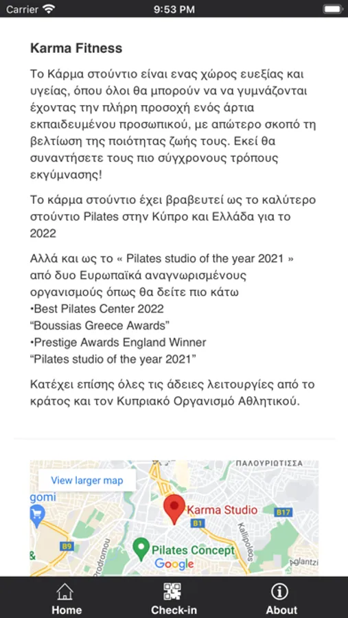 Το κάρμα στούντιο έχει βραβευτεί ως το καλύτερο στούντιο Pilates στην Κύπρο και Ελλάδα για το 2022